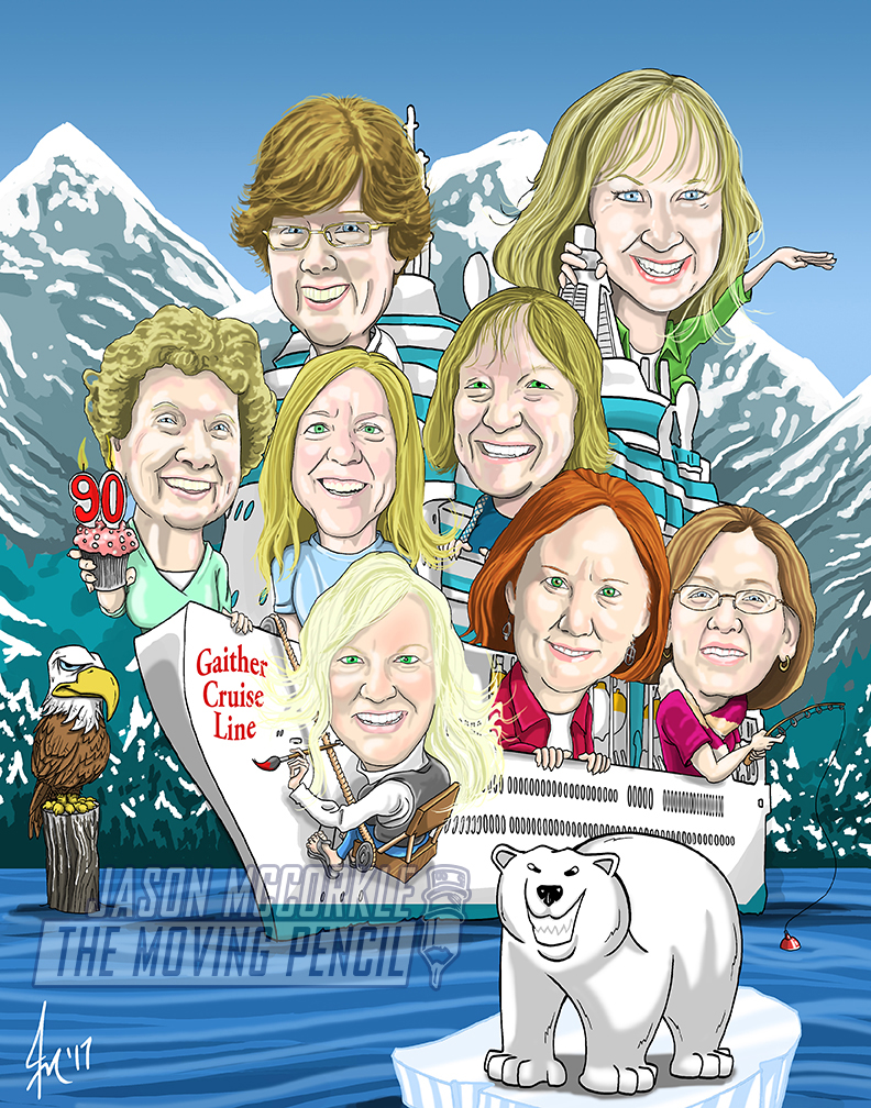 Below you will see several examples of custom illustrations I have created throughout my career. These illustrations have been used poster, prints, mailers, t-shirts and more. People love receiving a personalized gift they can’t find anywhere else. If you interested in a your own custom illustration, contact me and tell me a little about the idea you have in mind, and I’ll send you a quote today.